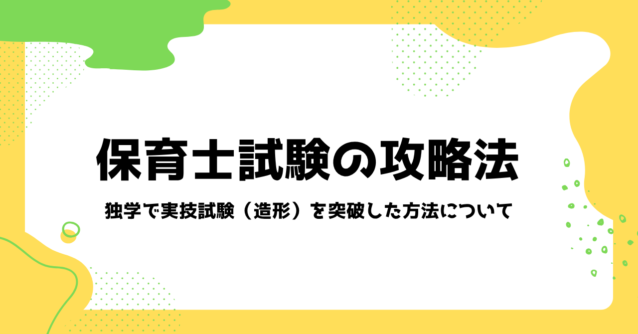 今回は保育士実技試験(造形)を独学で合格したいと考えている方に向け、私がどのような対策をして保育士試験を一発合格したかをお伝えします。ぜひ最後までお読みいただけると嬉しいです。
