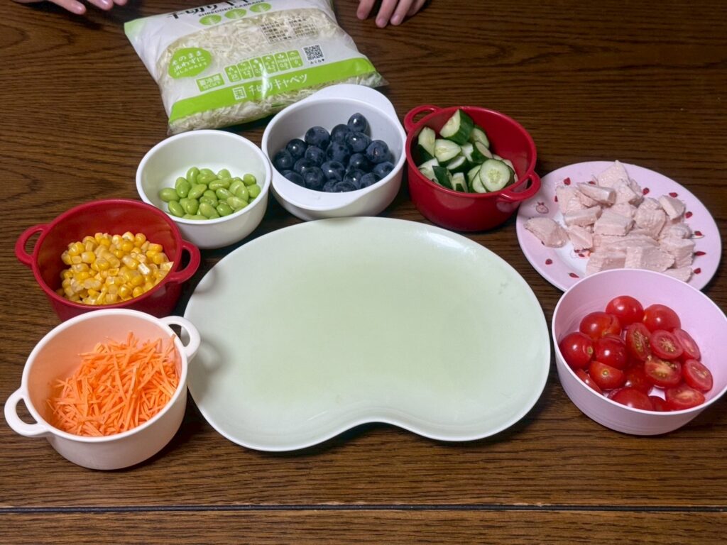 様々な彩や触感を楽しめ、栄養バランスも良く、子どもたちもすごく興味関心を持ったのでこのサラダを参考に作っていくことにしました。